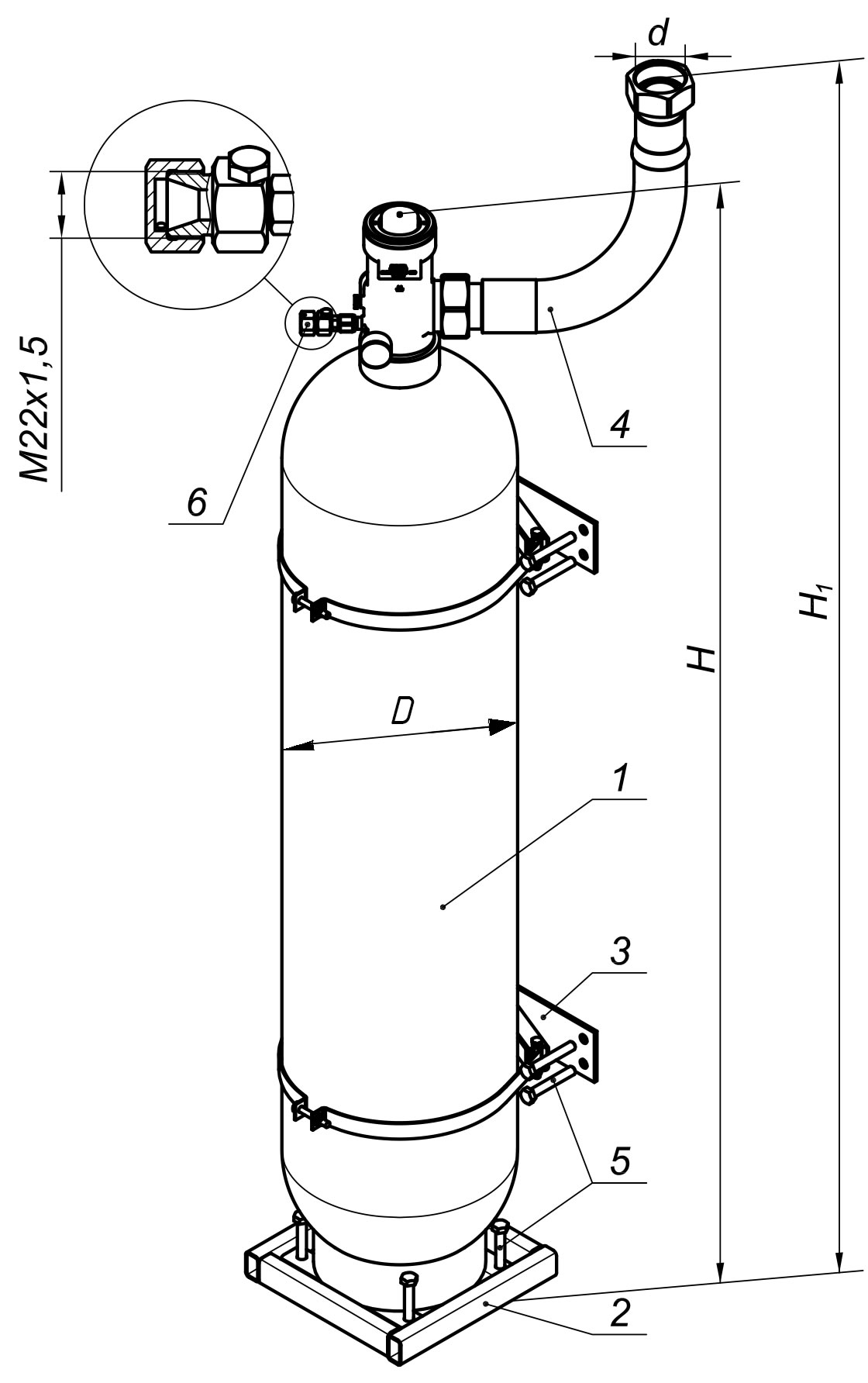 1 - Модуль 2 - Подставка 3 - Крепёжное приспособление 4 - Рукав высокого давления 5 - Болт 6 – Мембранное предохранительное устройство |