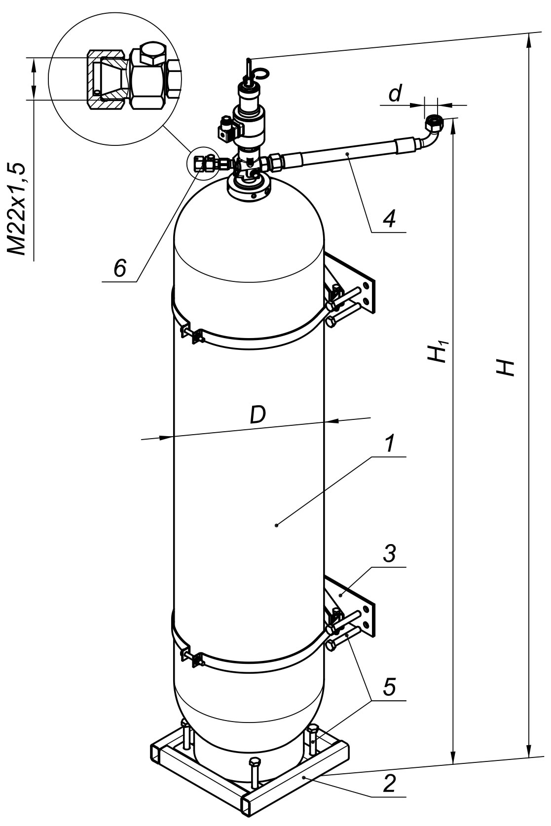 1 - Модуль 2 - Подставка 3 - Крепёжное приспособление 4 - Рукав высокого давления 5 - Болт 6 – Мембранное предохранительное устройство |
