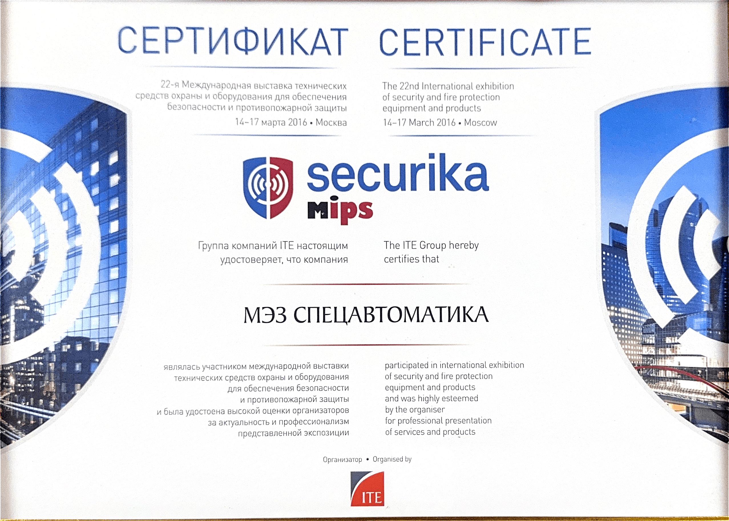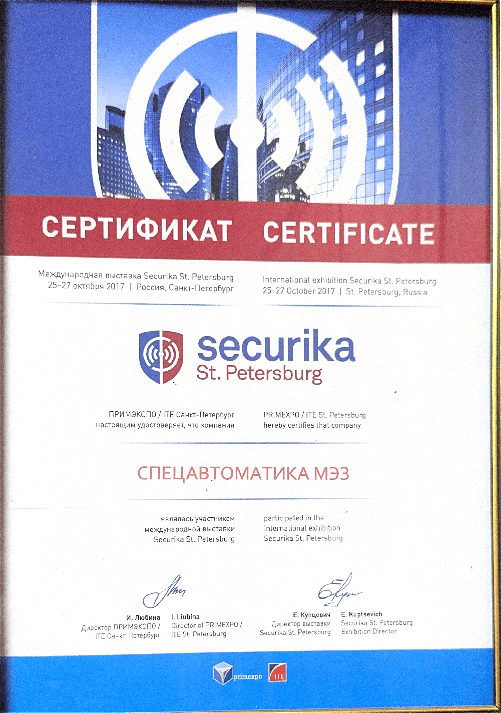 Сертификат участника, Securika St.Petesrburg, 2017 |