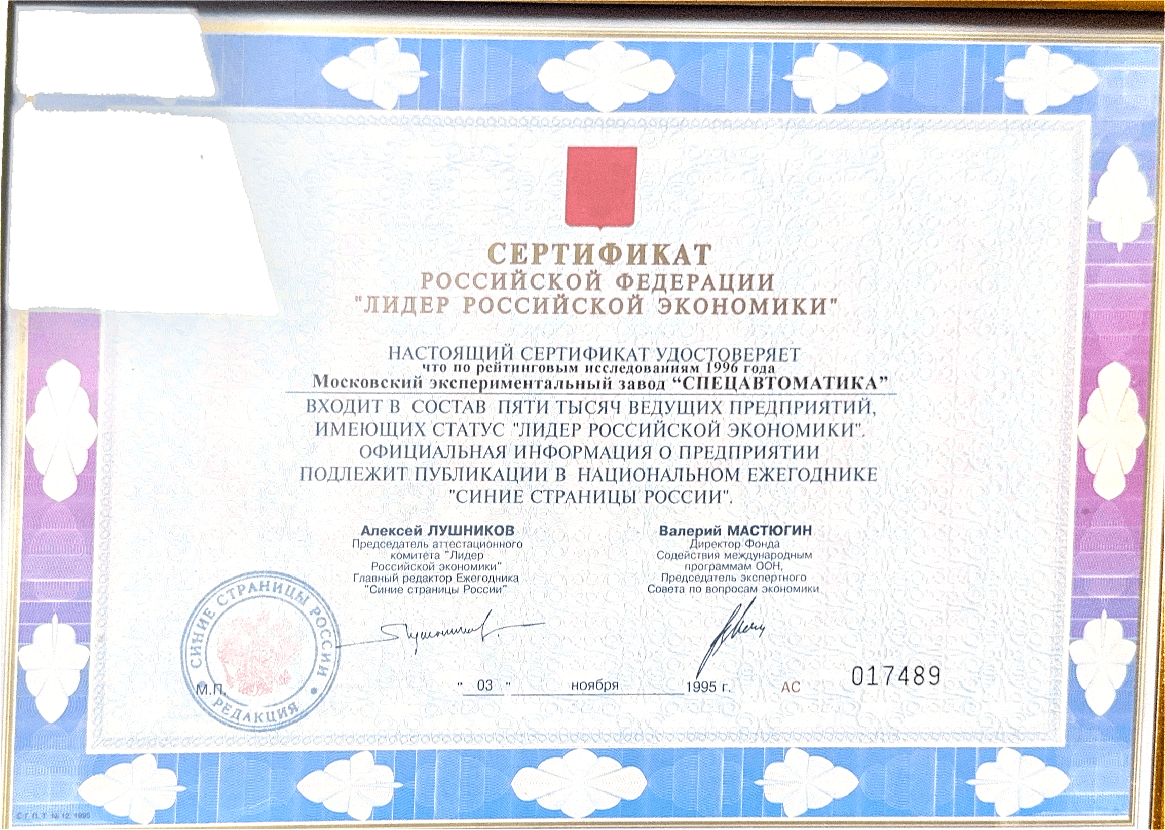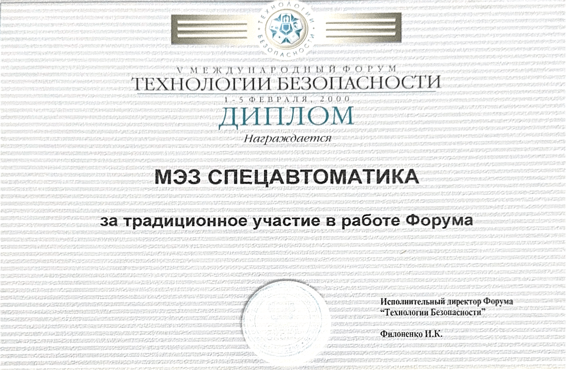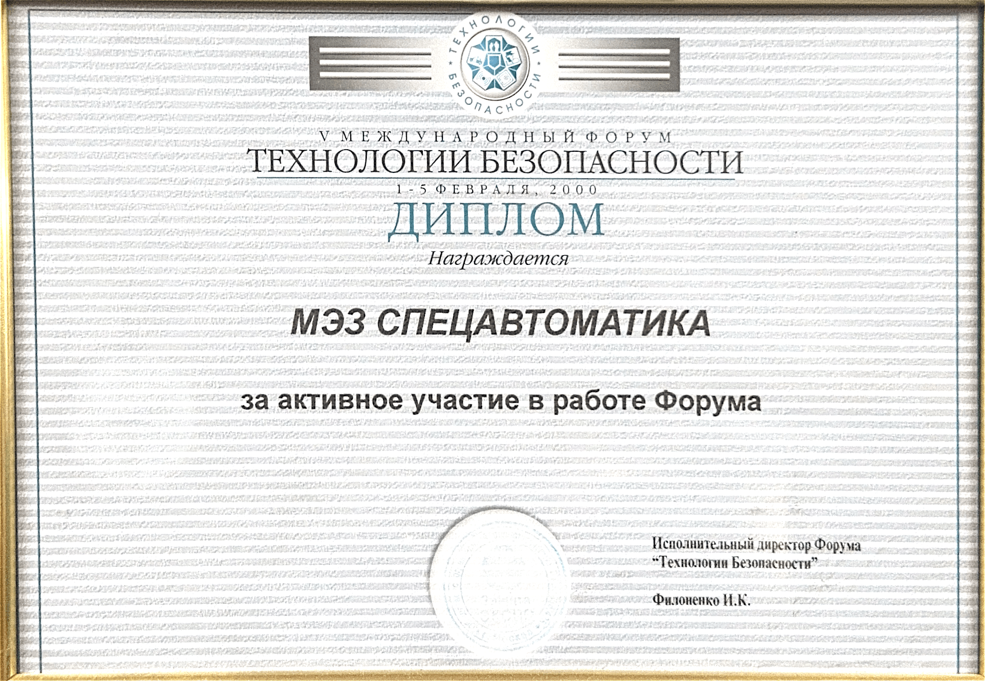 Диплом (за активность), V международный форум технологии безопасности, 2000г |