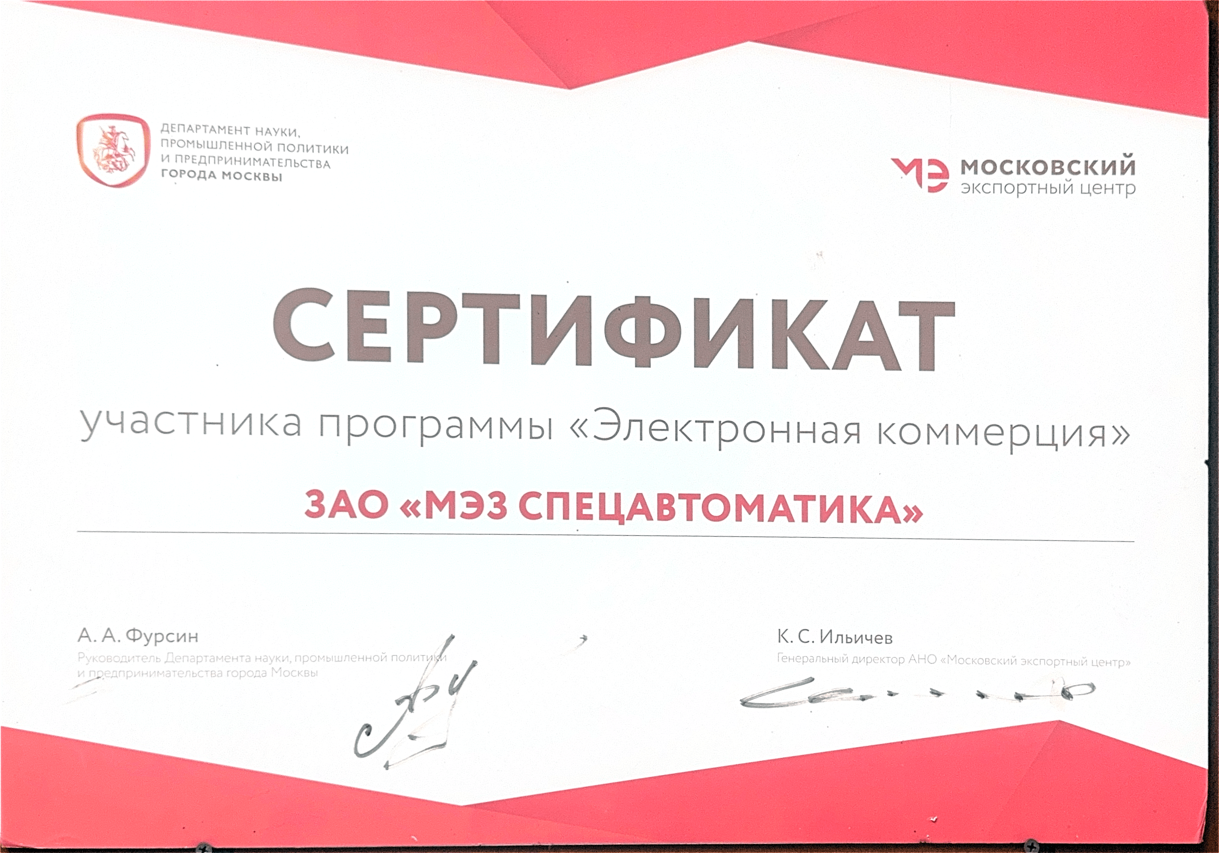 Сертификат, участника программы электронная коммерция, МЭЦ |