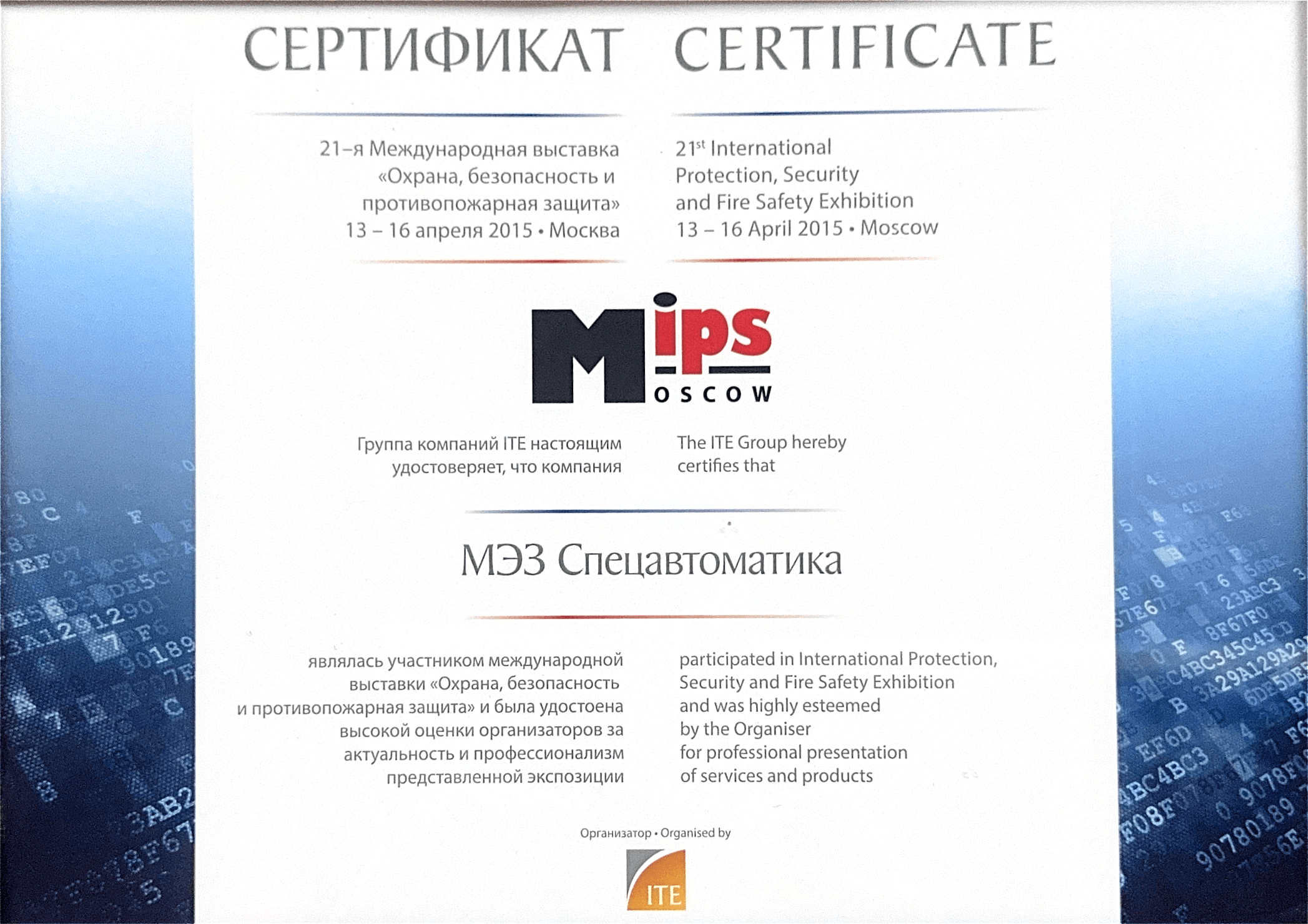 Диплом участника, актуальность и профессионализм экспозиции, 2015, mips |