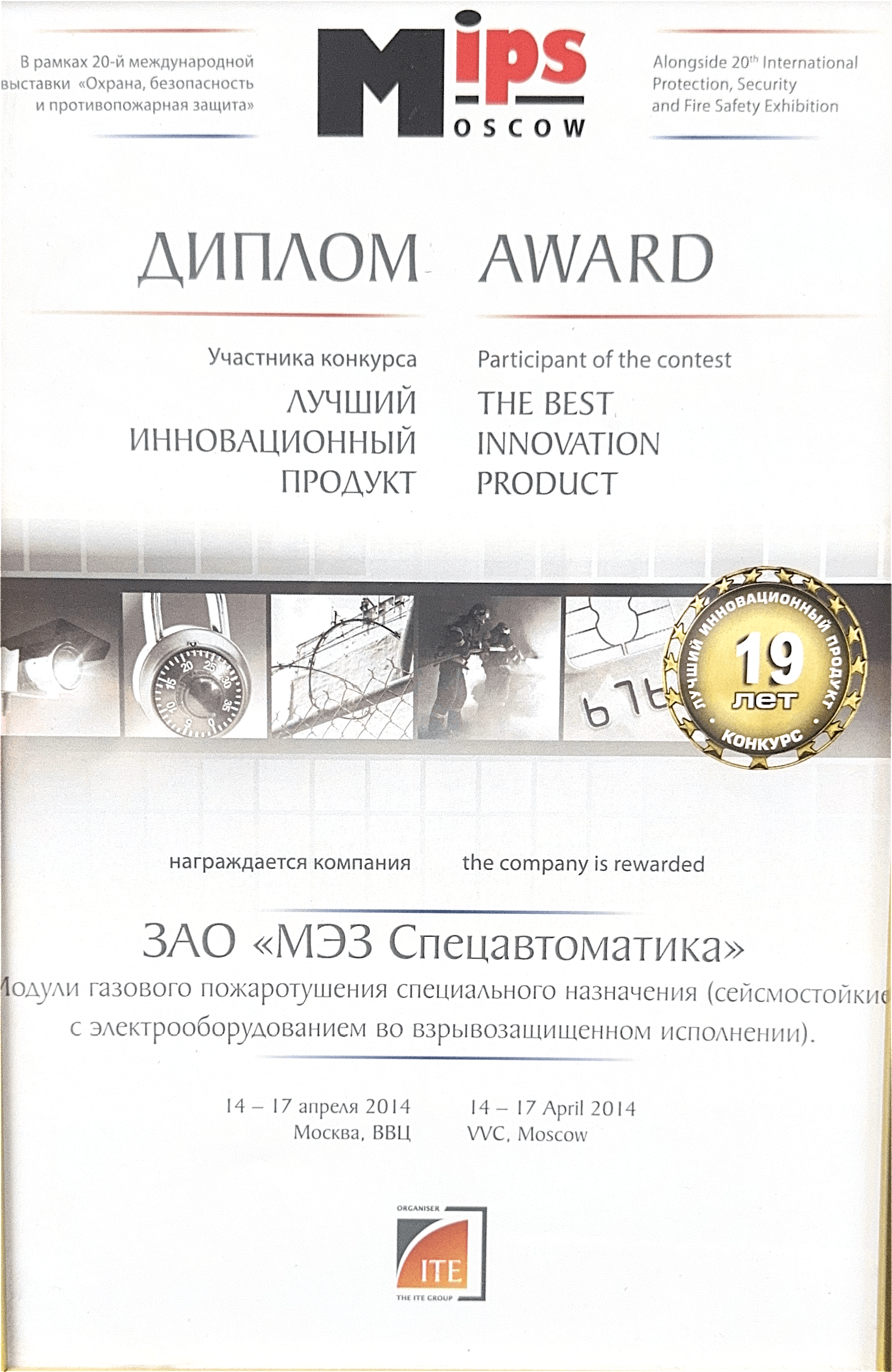Диплом, участника лучший инновационный продукт, 2014, mips |