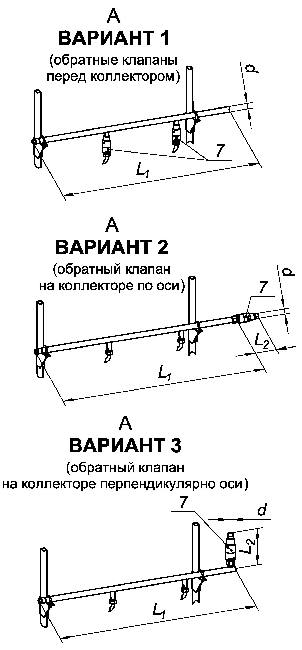 ВНИМАНИЕ! При заказе необходимо указать: - требуемый алгоритм срабатывания модулей батареи; - схему установки обратных клапанов на коллекторе по варианту 1, 2 или 3 (см. рис. на стр. 65) |